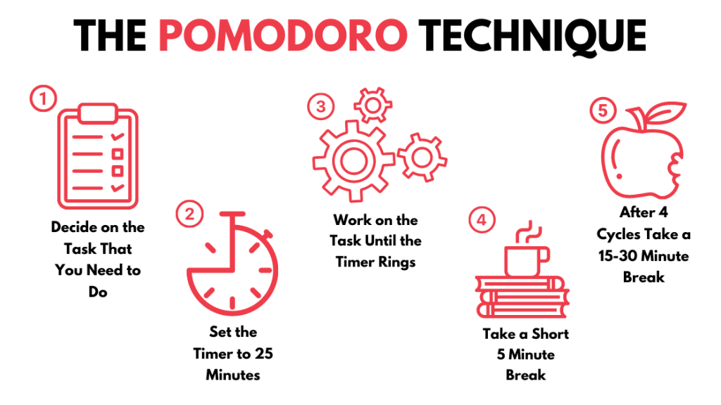 3. Work on the Task: Focus solely on the task until the timer rings, avoiding all distractions.